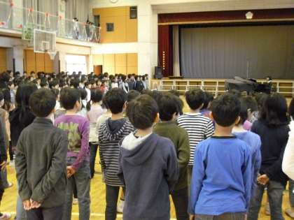 昨日、今年度初めての音楽朝会がありました。1年生を迎える会の「ビリーブ」を歌いました。1年生を楽しく迎えます。