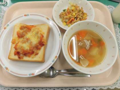 今日はえほん給食第四回目です。「ムーミン谷の夏まつり」より「スナフキンのビーンズスープ」を出しました。