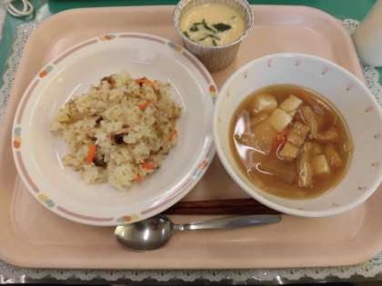 主な食材産地 米(青森県)ぶた肉(群馬県)とり肉(岩手県)エビ(インドネシア)卵(青森県)しょうが(高知県)にんじん(北海道)しめじ(長野県)えのきだけ(新潟県)ごぼう(青森県)大根(千葉県)じゃがいも(北海道)ほうれん草(千葉県)