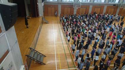 校歌斉唱と、1年生代表の言葉がありました。(12月25日)