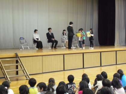 連休になり、お知らせが送れましたが、4月28日に離任式を行いました。3月末で退職された方や他校に換わられた方をお招きして、子どもたちとのお別れの式をしました。