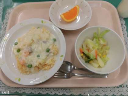 主な食材産地 米(青森県)とり肉(山梨県)えび(インドネシア)にんじん(千葉県)玉ねぎ(北海道)じゃがいも(北海道)キャベツ(愛知県)きゅうり(宮崎県)清見オレンジ(和歌山)