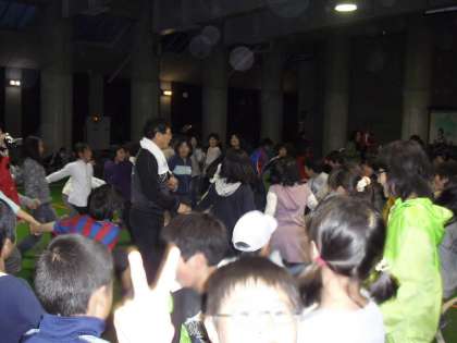 雨が降っていたので、キャンプファイヤーを、屋根付き広場っでキャンドルサービスにしました。