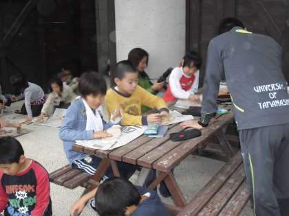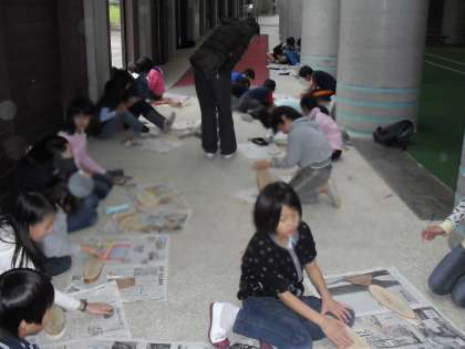 12時15分に戻り、お昼にしました。雨は降りませんでした。その後、壁かけを作成しました。