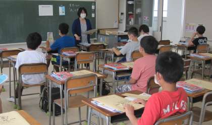 分散登校へのご協力、ありがとうございました。子どもたちは、久しぶりに顔を合わせ、嬉しそうにしていました。各担任が1週間分の課題の説明をして渡しました。