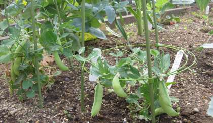 手入れの行き届いた「おやじ農園」の様子です。大根、人参、下仁田ねぎが大きく育っています。スナップエンドウは食べごろです。ブロッコリーや枝豆の種も植えられていました。