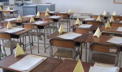 来週の分散登校日に向けて準備を進めています。課題プリントの準備や、登校日に伝えることなどの確認を行いました。教室の準備も整いました。(5月14日)
