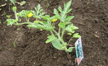スナップエンドウやかぶが収穫され、新たにミニトマト、なす、小玉西瓜などの苗が植えてありました。ブロッコリーの種は芽を出し、順調に育っています。