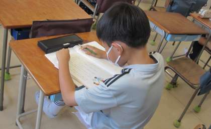 『白いぼうし』の学習をしています。4つの場面ごとに、出来事や登場人物の様子について先週の課題でワークシートにまとめたことをもとにして、意見交流をしました。(6月10日)