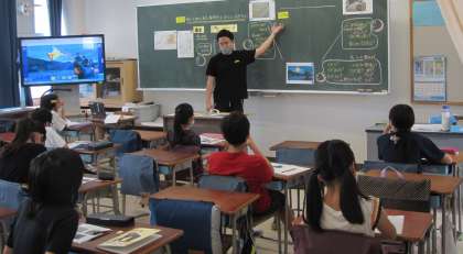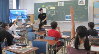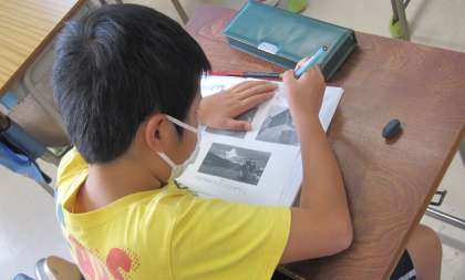 これから学習していくための「学習問題」をつくる授業です。今日の課題は『低い土地にある海津市は、どんなところだろう』です。3枚の資料写真から疑問に思ったことを書き出していきます。子どもたちが疑問を発表していくと、黒板が一杯になりました。予想したことや分かったことを整理して、意欲的に学習問題をつくっていました。