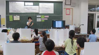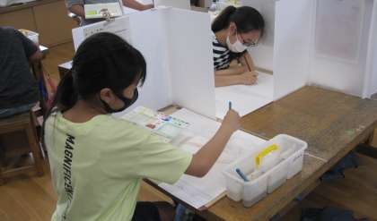 アイデアスケッチ「木々を見つめて」の学習をしています。自分の思いに合った色をつかい、イメージに合った筆の使い方をして、集中して描いていました。