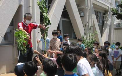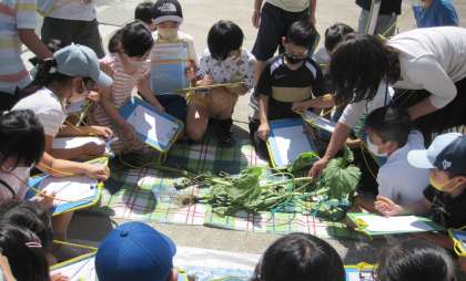 「植物のからだのつくり」について学習を進めています。今日の課題は「ヒマワリとホウセンカのからだのつくりを調べよう」です。実物を熱心に観察して、観察カードに絵と言葉で表現していました。