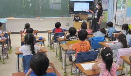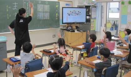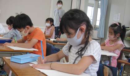 「ひらがなの かきかた」について学習を進めています。今日の目標は『「むすび」に きをつけてかこう』です。「ます」「なす」を『よこたまご』『たてたまご』を意識しながら5分間集中して練習しました。清書の1回は、特に緊張して書いている様子が印象的でした。授業の振り返りでは、自分の成長を実感していました。