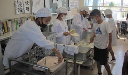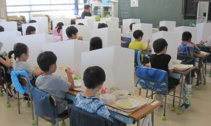 とても静かな給食の時間です。食器とスプーンの擦れる音がよく聞こえます。