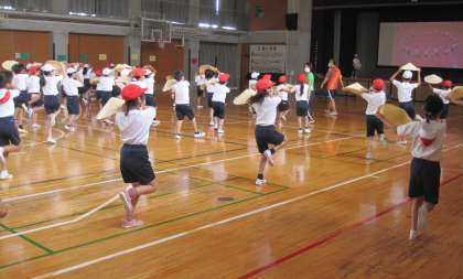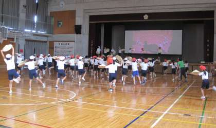 各学年、制約の中で工夫して練習に取り組んでいます。日本の伝統的な踊りにもチャレンジしています。