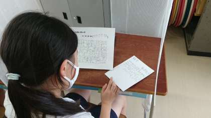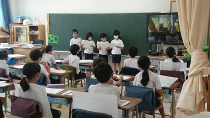 今度、一年生に学校の紹介をします。今日は、自分が書いた紹介文を見直し、クラスのみんなからアドバイスをもらいました。(9月15日)