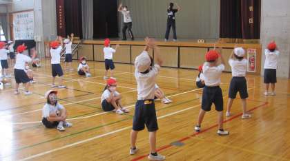 静かに落ち着いて練習しています。友達の演技を見て、よいところをほめたり、アドバイスしたりしていました。