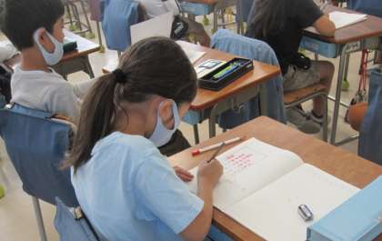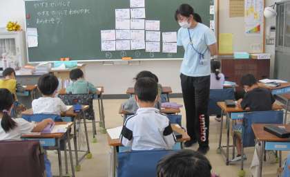 今日の課題は「かずをせいりして、わかりやすくあらわそう」です。何曜日にアサガオの花がいくつ咲いたか、グラフを使って花の数を整理しました。