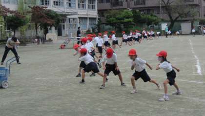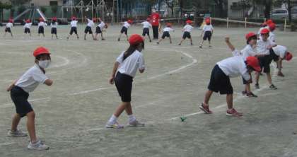 校庭で伸び伸びダンス。キメのポーズが決まっています!
