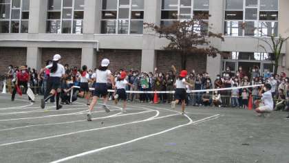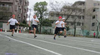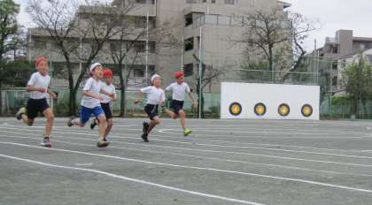 運動発表会、開始しました。写真は3年生、4年生の短距離走です。保護者の皆様、ご来賓の皆様、ご声援ありがとうございます。