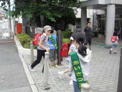 4年生以上の運営委員と代表委員会の児童が、代表委員会の取り組みとして「スマイルモーニングキャンペーン」として、挨拶運動を開始しました。8時から8時15分の登校時間帯に東門、西門に立ち、登校してくる他の子どもたちに挨拶を行っています。22日まで取り組みます。