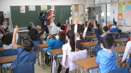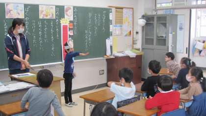 テーマは「がんばるこころ」です。教材「おふろば そうじ」の登場人物になりきって考えていくうちに、自分のために、人のために努力する大切さを理解し、やる気になっていく子どもたちの様子が見られました。