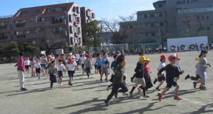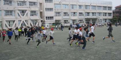 12月3日〜1月15日の期間、持久走月間として取り組んでいます。低学年、高学年が1日交代で中休みに校庭を走っています。音楽が流れると勢いよく走り出します。子どもたちは、繰り返し取り組む中で自分のペースをつかんだようです。