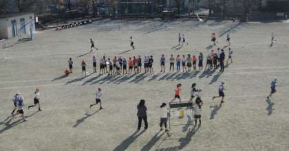 持久走月間に合わせて、長距離走に取り組んでいます。同じペースで走れるようにラップタイムをとりながら走っています。記録している子どもたちの応援で、より力を発揮しています。