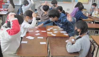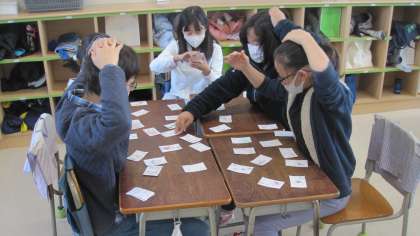 国語「冬の楽しみ」で、かるたを作りました。グループの友達と楽しみました。