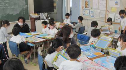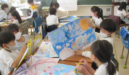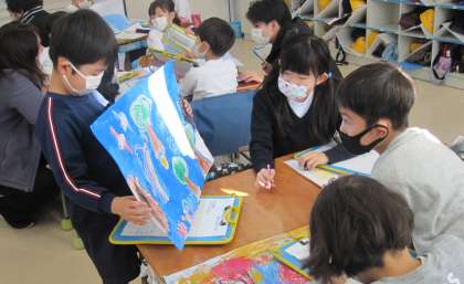 「ききたいな ともだちのはなし」では、図工の時間に描いた自分の作品について、友達に伝えました。発表を聞いた友達は、作品の良いところをみつけて伝えていました。友達の作品について夢中になって質問している姿が印象的でした。
