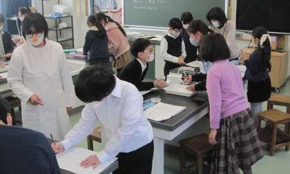 「もののとけ方」について学習を進めています。ものがとけると、とけたものの重さは変わるのかを考えます。根拠をもって予想を立て、意見交換をしました。実験では、どの班も正確な数値を記録し、実験結果から分かったことを自分言葉でまとめることができました。ゲストティーチャーの「すい ようえき 博士」と理科支援員がティームティーチングで子どもたちの学びを支えました。