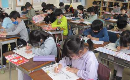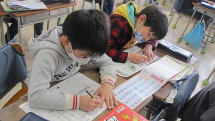 2年生で学ぶ新しい漢字は、160字です。子どもたちは、熱心に練習していました。