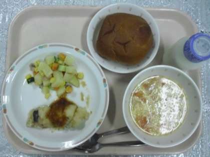 14日のメニューは、黒糖パン、魚のバーベキューソース、マセドアンサラダ、トマトと卵のスープ、牛乳でした。15日は、そぼろ丼、こんにゃくサラダ、フルーツヨーグルト、牛乳でした。19日で給食は終了です。