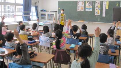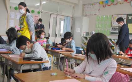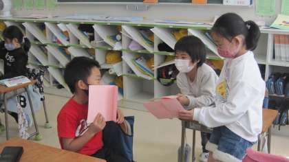 教材名は、「あなたって どんな人?」友達のよいところについて伝え合い、自分を振り返りました。友達から自分のよいところを伝えられると「うれしかった、いい気持ち」「ありがとう」という気持ちになったことを発表していました。