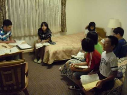 絵付け後は、明日のために寝る準備です。班長会議もしました。