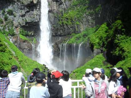 バスで、いろは坂を登り、華厳の滝を見学し、湯元に行き、源泉を見学しました。その後、湯の湖の河畔を歩き、湯滝でお弁当をいただき、グループで戦場ヶ原を歩き、しゃくなげ橋を目指しました。しゃくなげ橋で全員で合流して、竜頭の滝を見学し、菖蒲が浜から船に乗り、立木観音桟橋で下船して、ホテルに戻りました。