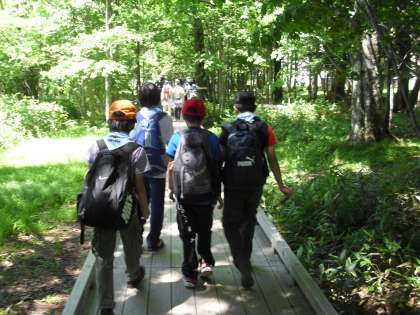 硫黄の臭いを嗅いで、源泉を触って、湯の湖の湖畔を歩きました。