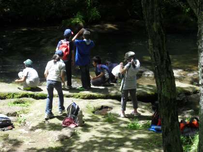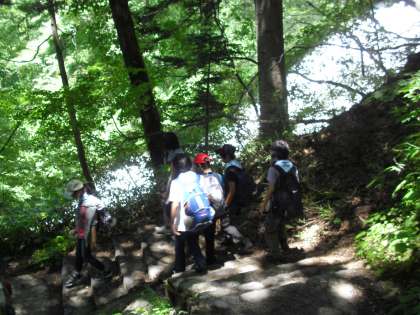 お弁当をいただいて、いよいよグループでハイキングです。しゃくなげ橋を目指します。