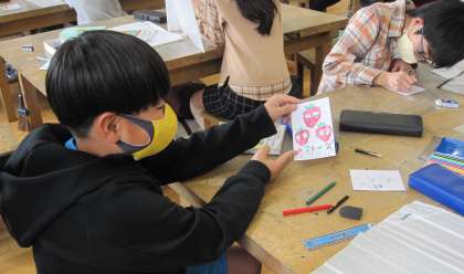 進級して初めての図工の授業は、「マイキャラデザイン」について考え、一人一人が思い思いのキャラクターをデザインしました。