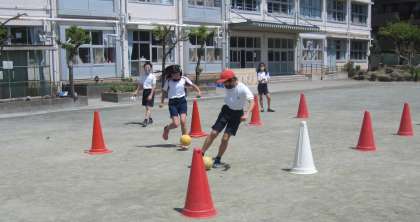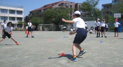 「体つくり運動」の学習を進めています。体の動きを高めるために、一人一人がめあてをもって運動に取り組んでいます。繰り返しタイムを計測し、記録が伸びるたびに喜んでいました。