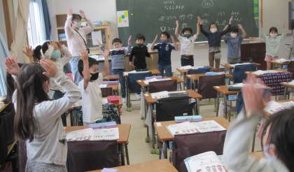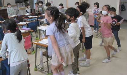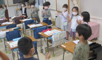 「たん たん たん うん 」のリズムで遊びました。〇〇さん はあい のリズムで果物の名前を言っていき、リズムに合わせながらジェスチャーをつけて楽しみました。