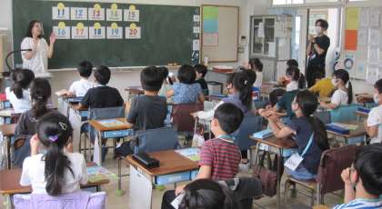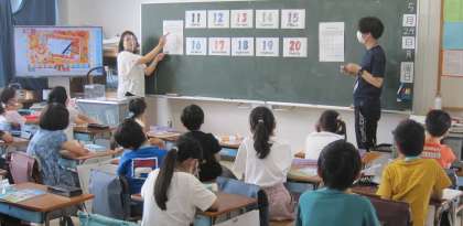 11〜20の数字の発音の仕方について学んでいます。リズムの手拍子とともに発音したり、ビンゴゲームをしたりして、活動を通して英語に慣れ親しんでいました。