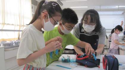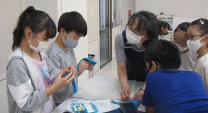 学習した縫い方、玉結び等を活用して「マイ・ミニバッグ」を作りました。今日は最後の仕上げをしました。完成した作品は、家庭科室の廊下に掲示してあります。