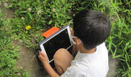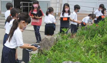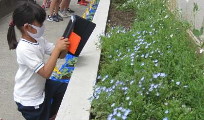 「かんさつ名人になろう」の学習をしています。校庭に出て、iPadを活用して、植物の写真を撮影しました。 1週間後に同じ植物を観察して、変化を調べて文章で表現します。