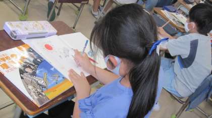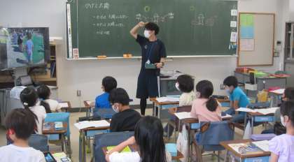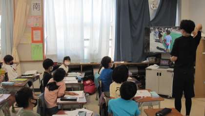 「かげと太陽」の学習を進めています。前時に太陽やかげの向きに気をつけながら、かげを作ったりかげふみをしたりして遊びました。今日は、その時に気が付いたことを話し合い、課題をつくりました。「かげができるとき、太陽はどの方向に見えるのだろうか」次の時間に実験を通して解決していきます。子どもたちは教室に掲示してある東西南北の表示を見ながら発言していました。