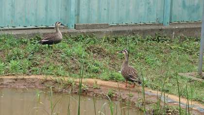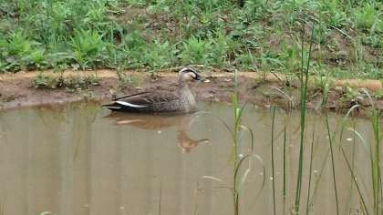 子供たちが登校する前のビオトープに、カモが来ていました。(6月2日)