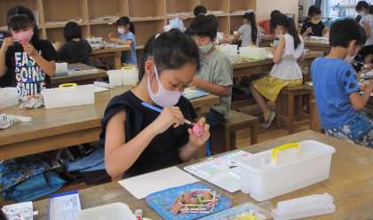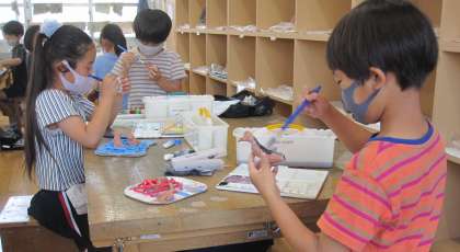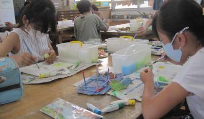 課題:「イメージを広げながら仕上げよう」【トリ色タイム】では、イメージした色をパレットで作り、絵の具で丹念に塗っていきました。【フワフワタイム】では、巣の中の柔らかさを出すために綿を使用して色付けをしました。
