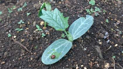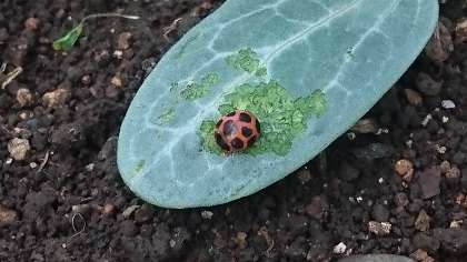 あたたかくなり、ヘチマの成長とともに、虫たちも活動を始めています。(6月9日)