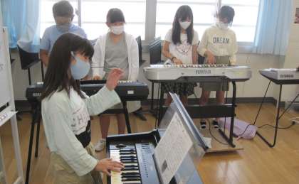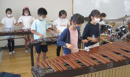 合奏「キリマンジャロ」に取り組んでいます。パートごとに熱心に練習を重ね、迫力のある演奏をしています。演奏技能が大きく向上し、パーカッションチームは全員合格しました。