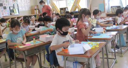 「見てみて!先生!」と子どもたち。できた喜びが伝わってきました。